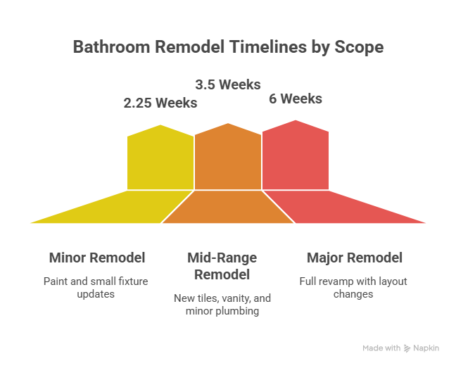 As we have discussed above, the bathroom remodel timeline differs for each customer because of its scope. Here is a quick overview to see how requirements change timelines: