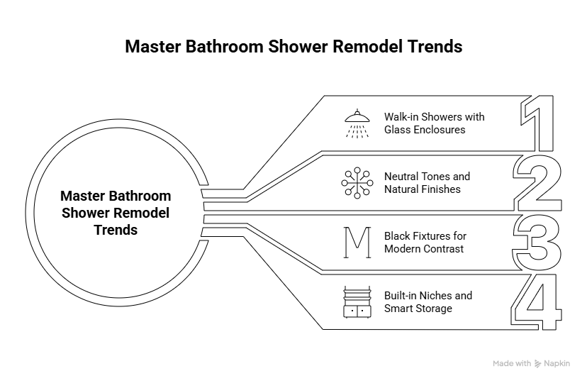 Keeping up with the latest design trends can help you plan your master bathroom shower remodel so that you can focus on functionality, materials, and lighting.